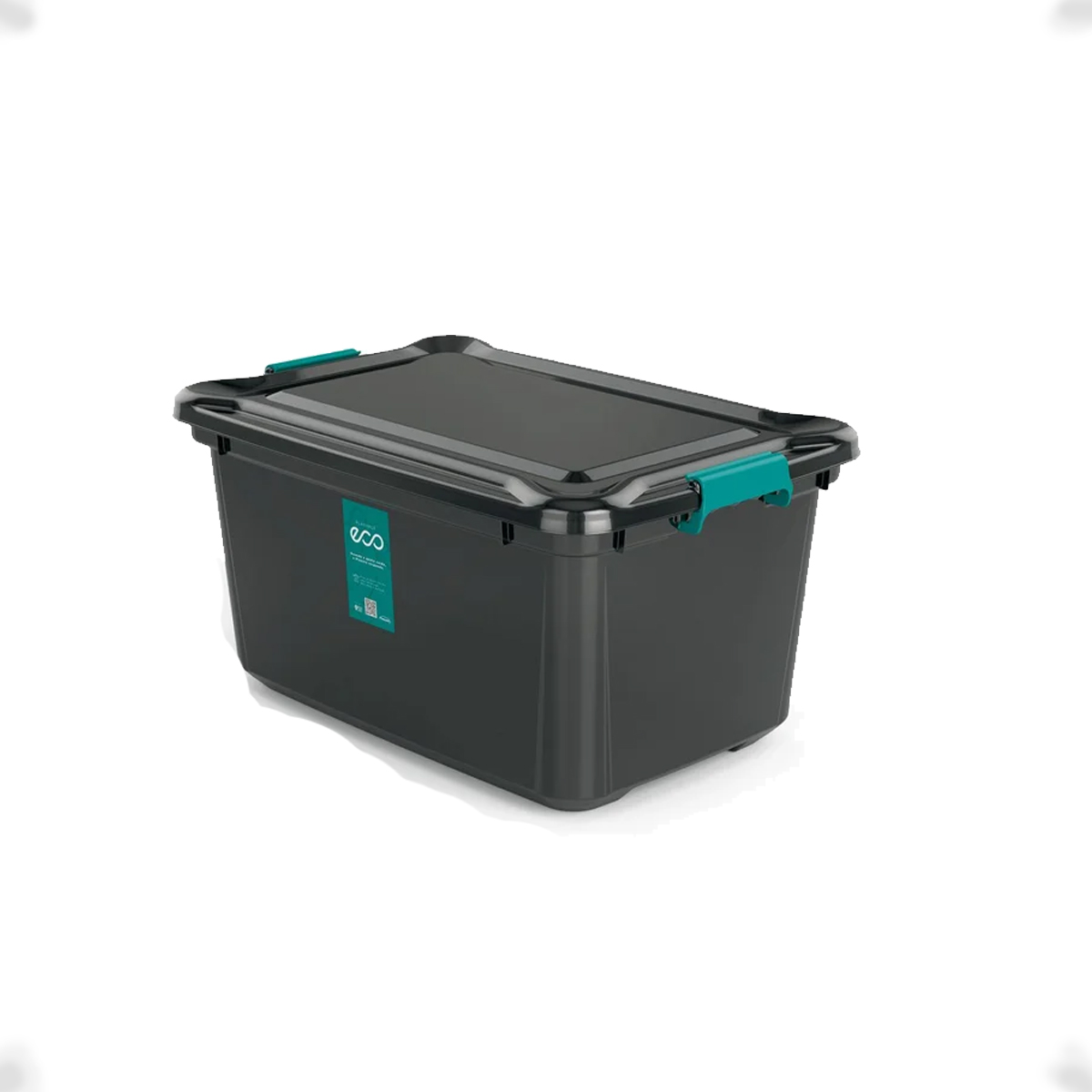 Organizador 27L Eco Life Plasvale é produzida com materiais de refugo. O refugo é o material plástico  remanescente que será moído e reutilizado em outro ciclo, após ser misturado com um material plástico virgem. Mesmo sendo de materiais reutilizados não altera as suas características, continua com a mesma qualidade e durabilidade. Possui travas de segurança que mantém o conteúdo vedado. Os pegadores nas laterais possuem o formato dos dedos para não machucá-los. Ideal  para organização e armazenamento individual de diversos itens.