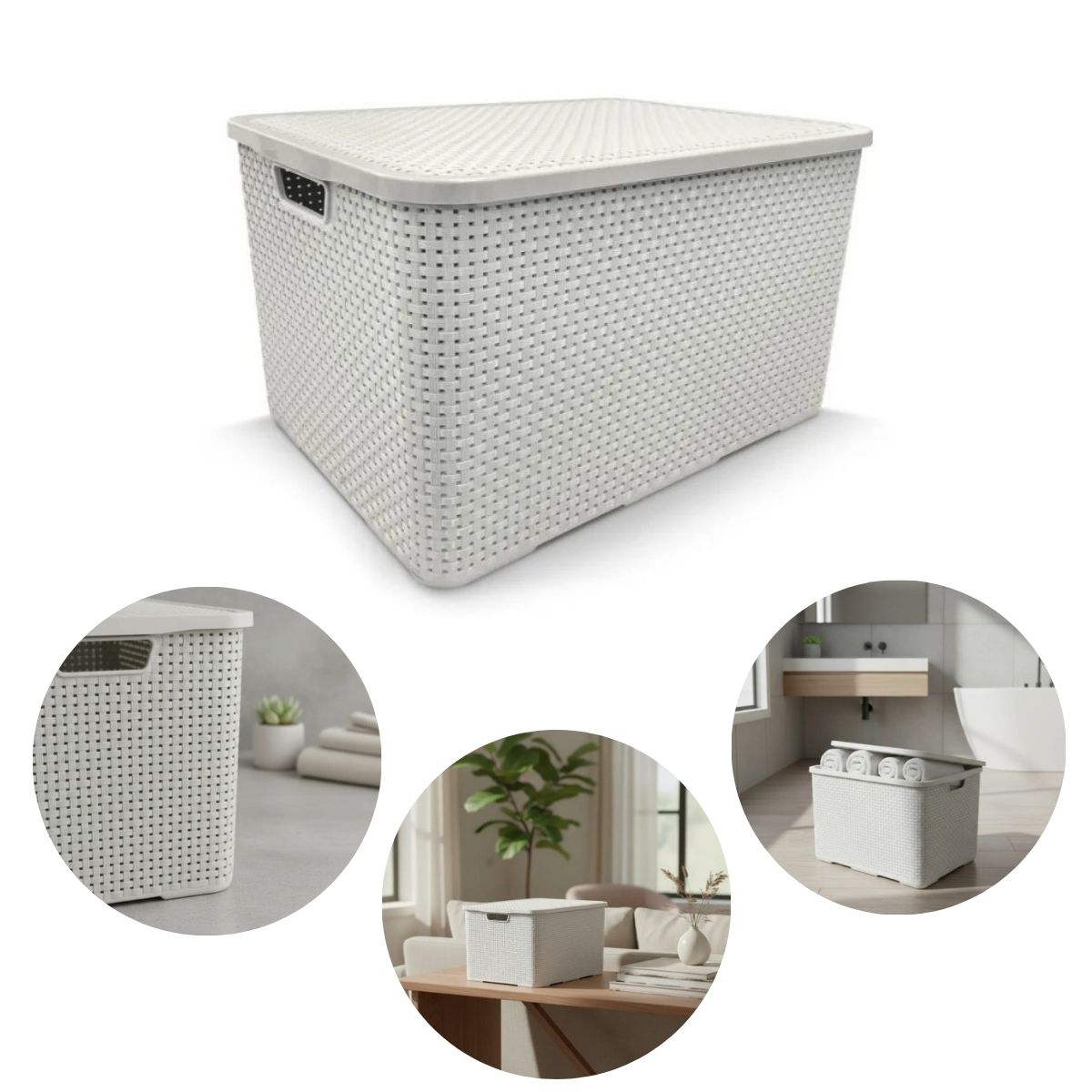 A Caixa Organizadora Rattan 7L com Tampa une praticidade, charme e funcionalidade em um só produto. Feita em polipropileno resistente, possui design trançado estilo rattan que adiciona um toque sofisticado à decoração, permitindo que seja exposta em prateleiras, closets ou banheiros sem perder a elegância.