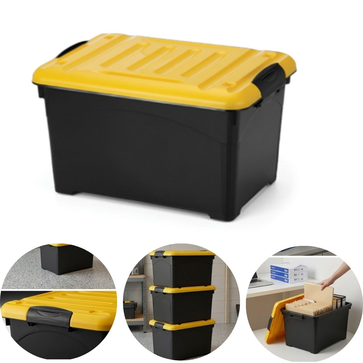 A Caixa Organizadora de 65 Litros com Tampa Amarela é ideal para quem precisa armazenar objetos maiores com praticidade e segurança. Com ampla capacidade, ela é perfeita para guardar roupas, brinquedos, ferramentas, materiais de limpeza, documentos ou diversos itens do dia a dia.