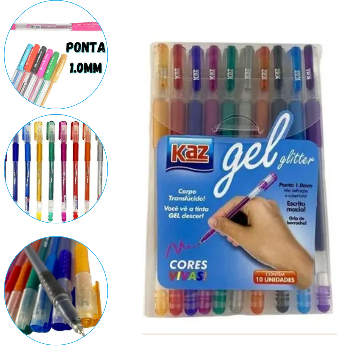 A alta qualidade da tinta evita manchas no verso das folhas, proporcionando uma experiência de escrita superior. Não comprometa suas necessidades de escrita e criação. Adquira as Canetas Gel com Glitter da KAZ para embelezar suas tarefas, estudos e hobbies.