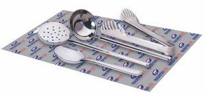 Kit com utensílios para cozinha, colher de arroz, escumadeira, concha e pegador.