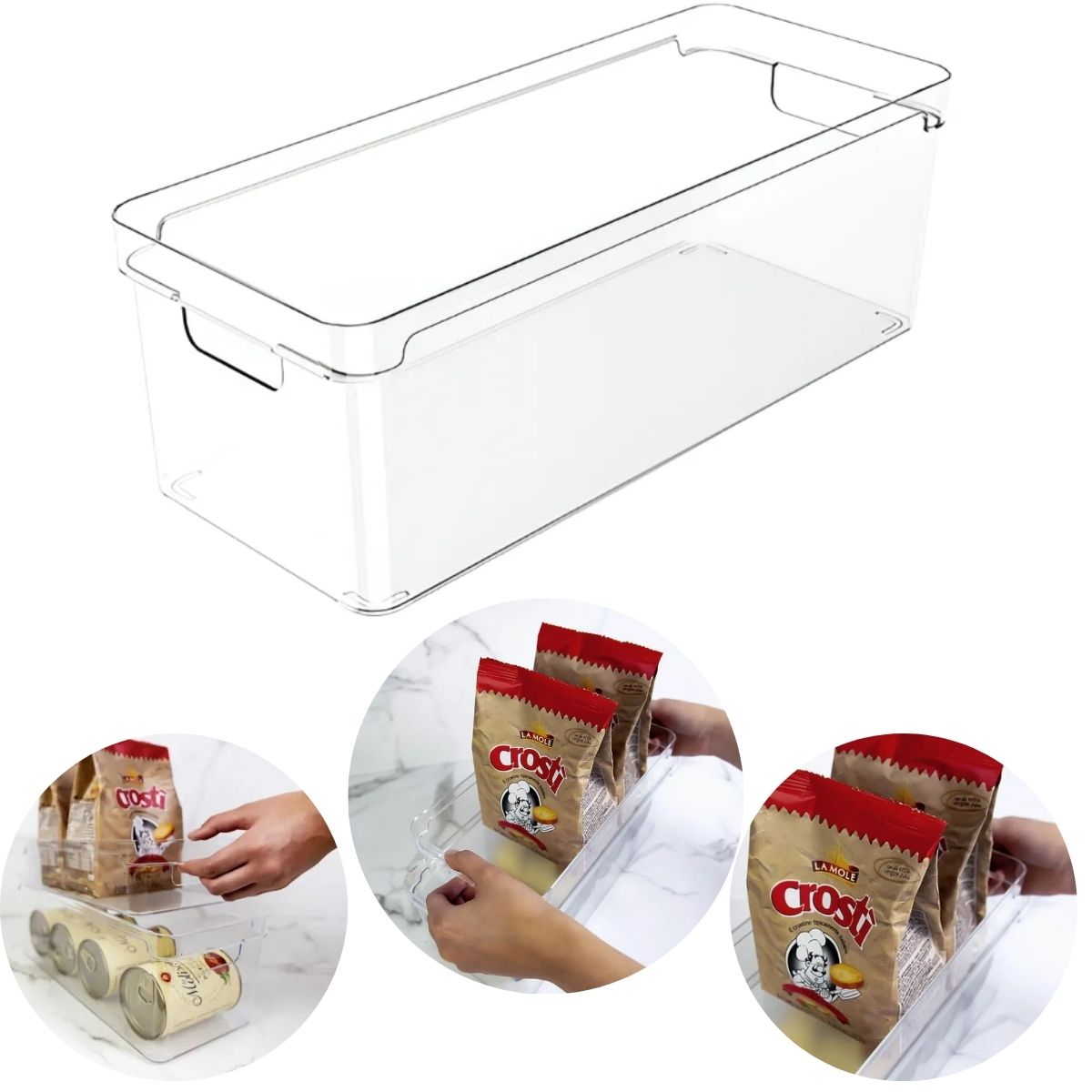 Fabricado em material transparente, ele facilita a identificação rápida do conteúdo, evitando bagunça e perda de tempo. Ideal para geladeira, despensa, armários, banheiro ou escritório, entrega praticidade real no dia a dia.
