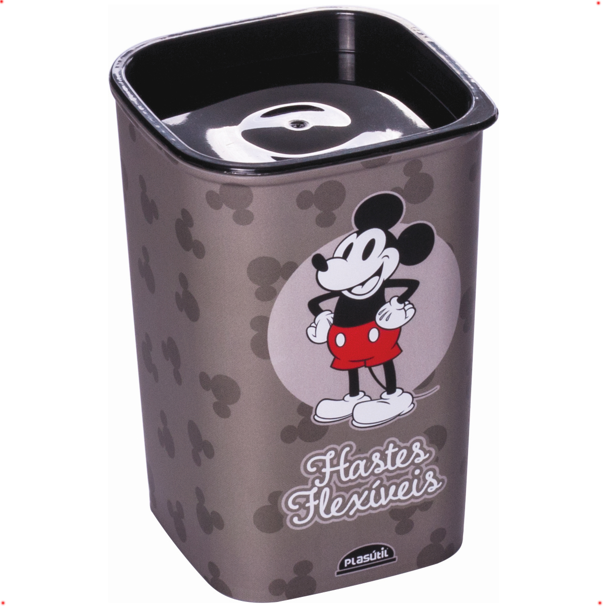Porta Cotonetes Em Plástico Cinza/Preto Mickey Mouse 420ml