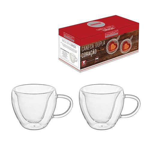 Produto ideal para demostrar a paixão que os brasileiros têm pelo café. O Jogo de Canecas de Vidro Parede Dupla Coração é composto por 2 unidades com capacidade para 230ml cada.