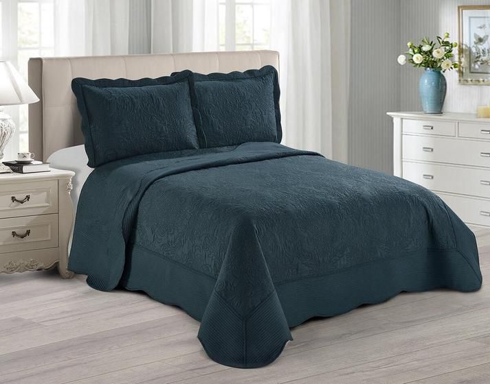 Colcha Marinho 240x260 para Cama Queen Antique Marinho Camesa com 03 Peças
