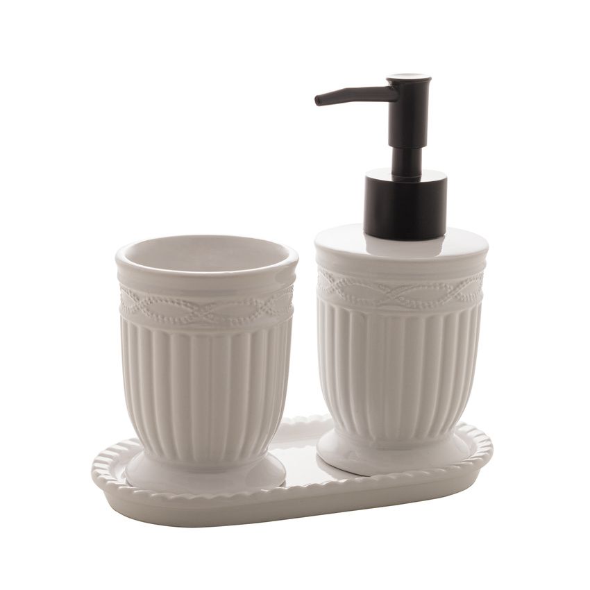 1 PORTA SABONETE LÍQUIDO 7x7x15,5cm - 250ml, 1 PORTA ESCOVA DE DENTES 7x7x9cm E 1 BANDEJA 16,5x8,5x1,5cm